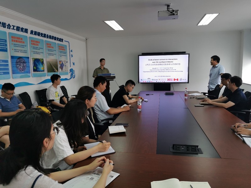 林尚飞博士后作了题为“西北大西洋波浪海流及海冰相互作用研究”的学术报告,详细介绍了他的代表性科研成果,包括海洋波浪与海流的数值模拟,海气相互作用、波浪海流与海冰相互作用等。会后,林尚飞博士后和与会师生就海冰数值模拟和斯托克斯漂流对海洋波浪频率的影响等热点问题展开了交流与讨论。