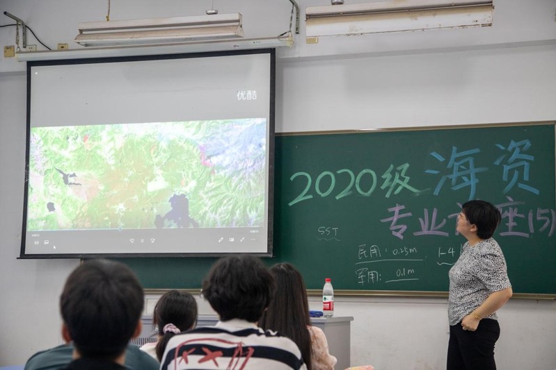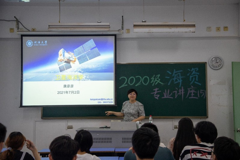 康彦彦老师基于其研究的卫星海洋学知识,为同学们介绍了遥感和遥感技术的基本内容,以及该技术在海洋资源开发与利用中的应用,引导学生直观了解遥感技术在现实生活中的重要性,带领学生提前接触海资专业的基础知识。