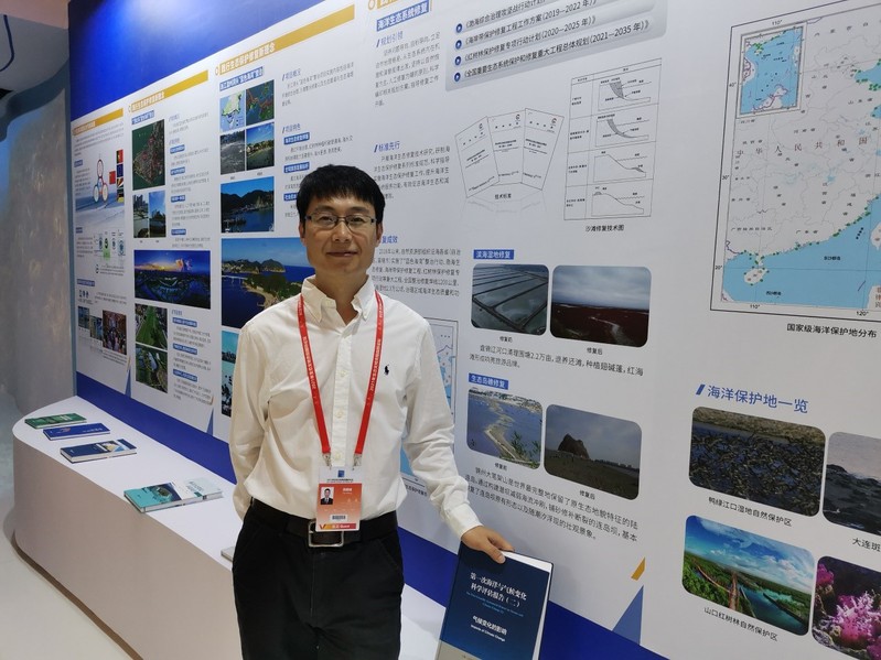 论坛还举办了以海洋生态修复为主题的展览,我校参与完成的“海岸带保护修复工程系列指南”、《第一次海洋与气候变化科学评估报告》等成果得到了展览。