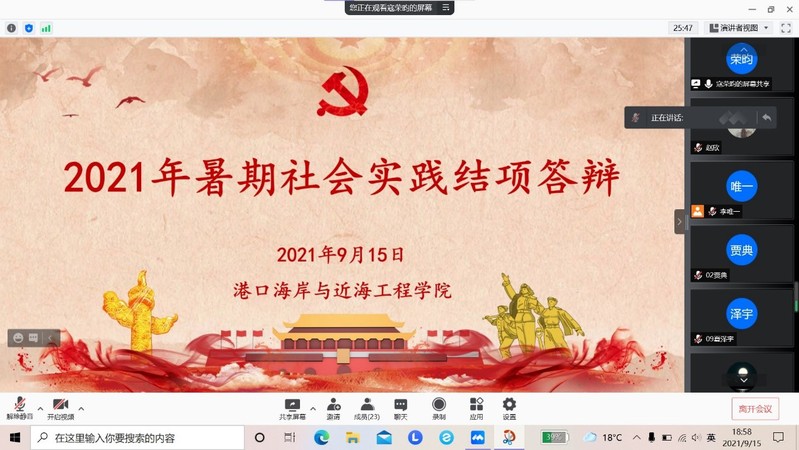 9月15日晚,av影片 团委通过腾讯会议线上举办了2021年暑期社会实践结项答辩会,av影片 2020级班导师及各年级辅导员作为评委出席。