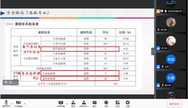 讲座伊始,林晨老师通过数据、图表等方式带领同学们归纳总结了av影片 2020级在大一学年课堂学习、第二课堂、社区管理等方面的表现。此外,林晨老师具体讲解了港航专业、海资专业2020级培养方案,梳理解答了近期同学们集中反馈的关于各类选修课要求的疑问。