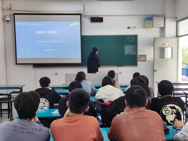 2022年3月11日下午,2021级海资专业在江宁校区致高楼A205教室开展了“遇见·海洋资源开发技术专业”主题座谈会。会议由班长兰翔主持,海岸带资源与环境系主任姚鹏、班导师陶建峰、2021级辅导员王恒星参加本次座谈会。