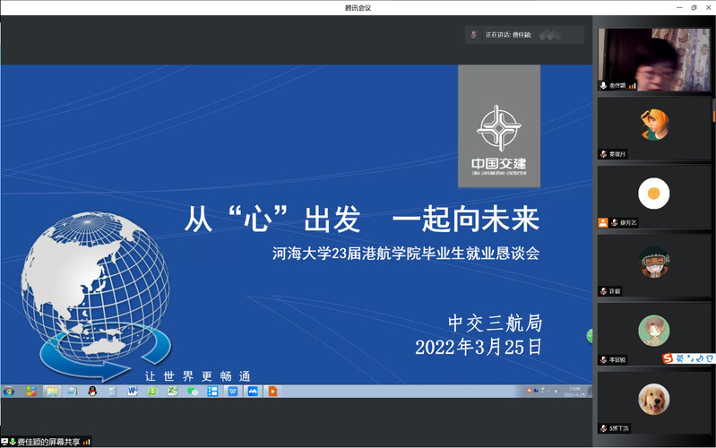 2022年3月25日下午,av影片 邀请了中交三航局人事经理费佳颖老师为2019级全体学生、家长进行线上就业指导讲座。院党委副书记沈国军、2019级全体学生、家长参加本次讲座,讲座由2019级本科生辅导员廖芳艺主持。
