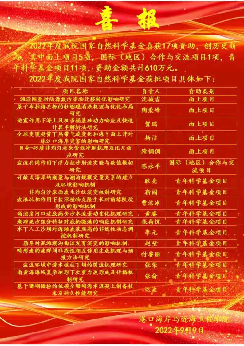喜报:2022年度我院国家自然科学基金获批项数创历史新高