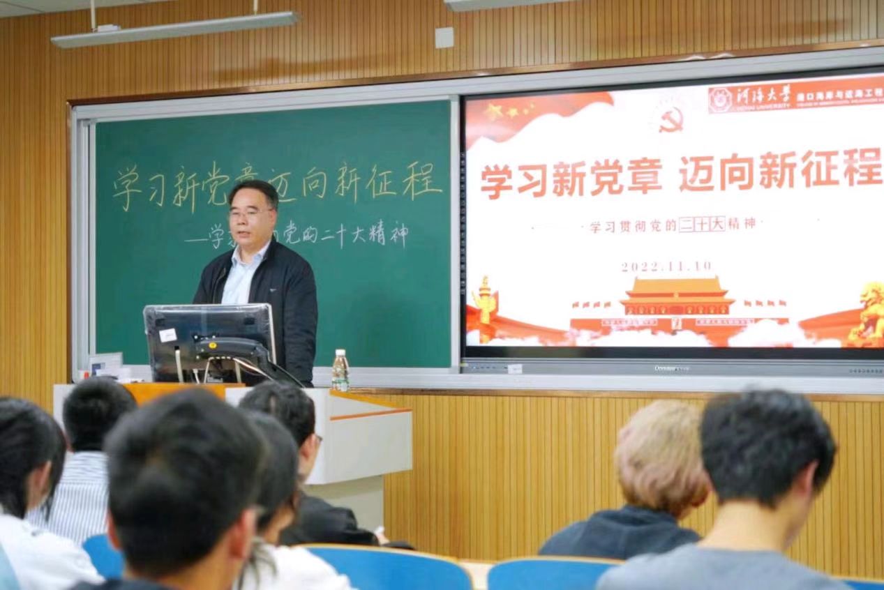11月10日,av影片 党委副书记沈国军在致用楼219为av影片 2021级本科生入党积极分子讲授“学习新党章、迈向新征程——学习贯彻党的二十大精神”专题党课。