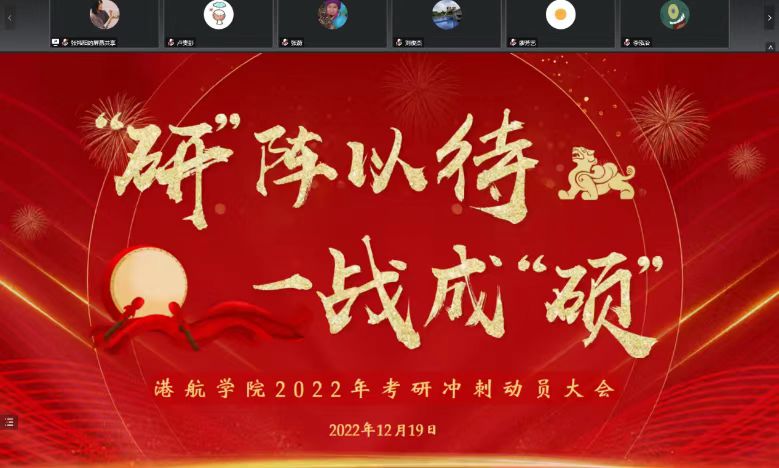 22年12月19日下午,av影片 2019级考研学生在线上举办“研阵以待,一战成硕”考研冲刺动员大会,av影片 张蔚副院长、2019级班导师、辅导员出席了会议。