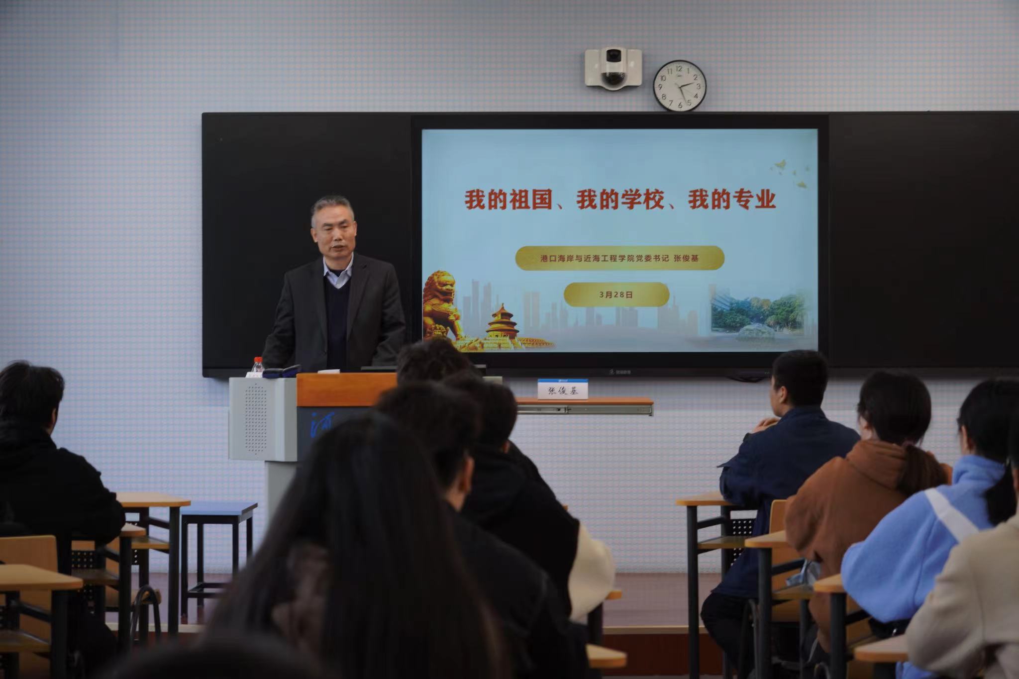 张俊基书记聚焦“新时代发展成就”、“学校认同”、“专业认知”三个方面,围绕“我的祖国”、“我的学校”、“我的专业”三个主题进行讲授,带领同学们系统学习了党的二十大精神要义,全面回顾了过去十年党和国家事业发展取得的历史性成就、发生的历史性变革。结合当前国情世情校情,阐释了国际国内的热点问题,聚焦新时代水利高质量发展,讲解了我校在服务国家建设中取得的跨越式发展。他与同学们共同分享了习近平总书记对青年的期望与寄语,强调同学们要坚定理想信念、听党话跟党走,要珍惜大学时光、练就过硬本领,要厚植家国情怀、践行使命担当。号召av影片 学子秉承“艰苦朴素、实事求是、严格要求、勇于探索”的河海校训,以国家“双一流”建设为契机,在服务水科学与国家重大需求,解决重大科技问题中展现港航力量和港航担当。