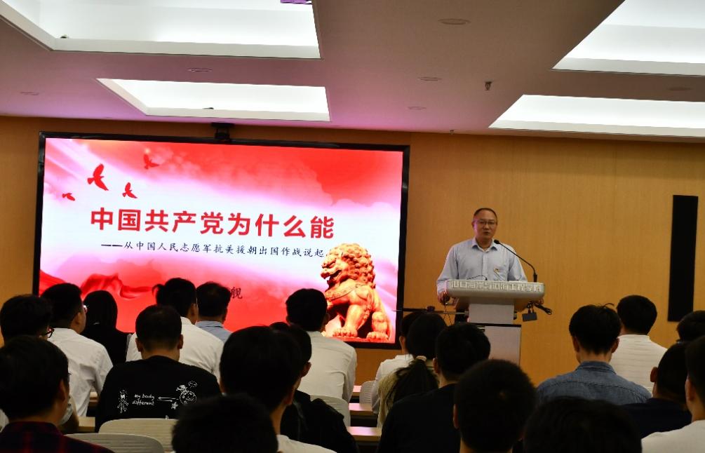随后,杜世舰副部长为社区功能型党支部的党员讲授了有关“中国共产党为什么能”内容的专题党课。杜部长围绕“中国共产党为什么能”的主题,以中国人民志愿军抗美援朝出国作战为切入点,带我们回顾了抗美援朝战役的历史背景和战争进程,带领我们深刻认识和体会了“中国共产党为什么能”,从历史的角度讲述了中国共产党中央统揽全局、实施有力的战争动员和正确的战争指导。