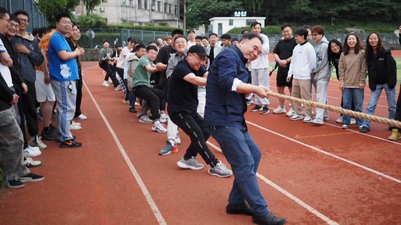 一条麻绳拉近了大家的友谊,一条麻绳连接了团结和友爱,一条麻绳演绎了奋斗和拼搏。声声有劲的呐喊,赛场上洒下大家努力的点点滴滴,挡不住的是青春活力,青年挥洒青春,尽展风采!