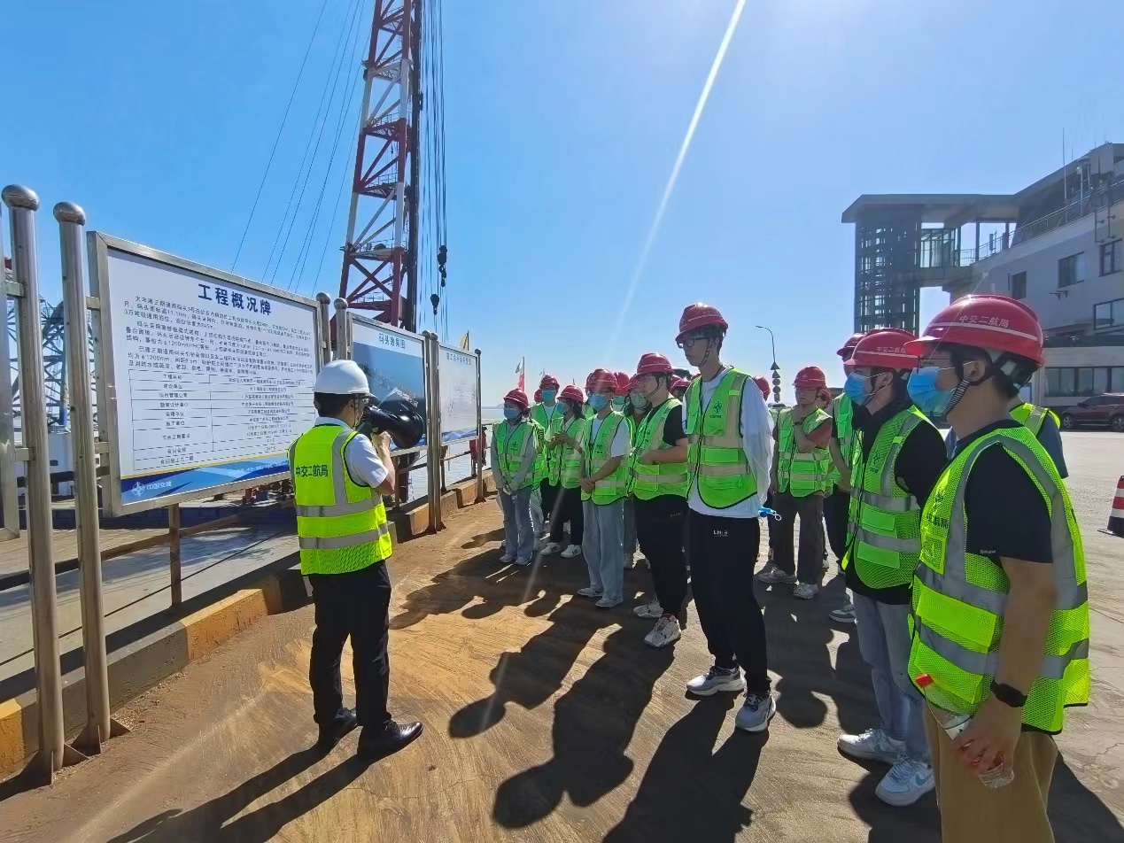 2023年6月3日,av影片 开展“走访名企 接轨职场”就业实践专项活动第1期,在2020级辅导员林晨带队下,28名学生走访中交二航局第三工程有限公司,赴大丰三期通用码头项目参观,通过参观项目部、观看企业视频、听取项目介绍、探访工程现场、座谈互动交流等形式的实践活动,深入观摩学习企业的基本概况与工程的建设情况。中交二航局三公司人力资源部经理王飞、副经理马在庆、培训主管圣国萍一行全程陪同参观实践。