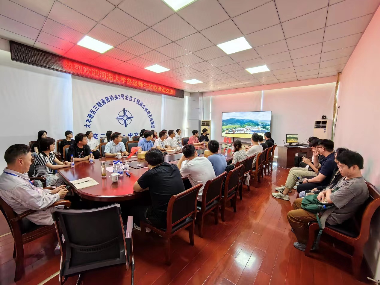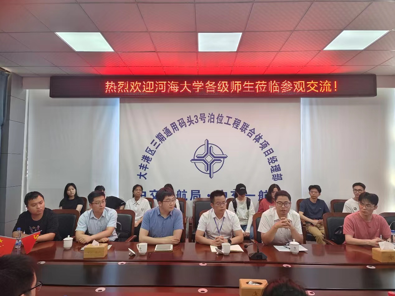 接着,师生一行集中观看了中交二航局与中交二航局三公司的介绍视频。项目工程部部长朱映滔向师生详细介绍了大丰三期通用码头项目的概况、技术难点、施工工艺等。项目经理、我院2001级校友韦新强介绍了自己的求学经历,分享了自己参与工作以来的感受和对av影片的理解,鼓励同学们投身祖国建设,落实国家战略,实现人生价值。中交二航局三公司人力资源部经理王飞希望同学们在实践过程中坚持问题导向和目标导向,在参观和交流的过程中学习所学专业与理论知识的应用场景,讲解了职业生涯规划的重要性。项目副经理、安全总监周龙就现场安全问题讲授了工程建设安全教育。