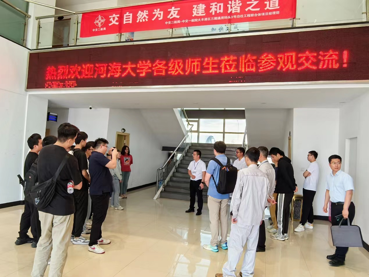 然后,师生一行在企业的带领下,赴项目建设一线参观,听取项目经理与项目副经理、安全总监对目前项目的建设现状的介绍,实地观摩码头的运行状态和岸桥等港口机械,对工程项目建设与港口水工建筑物有了更为具体的认知。