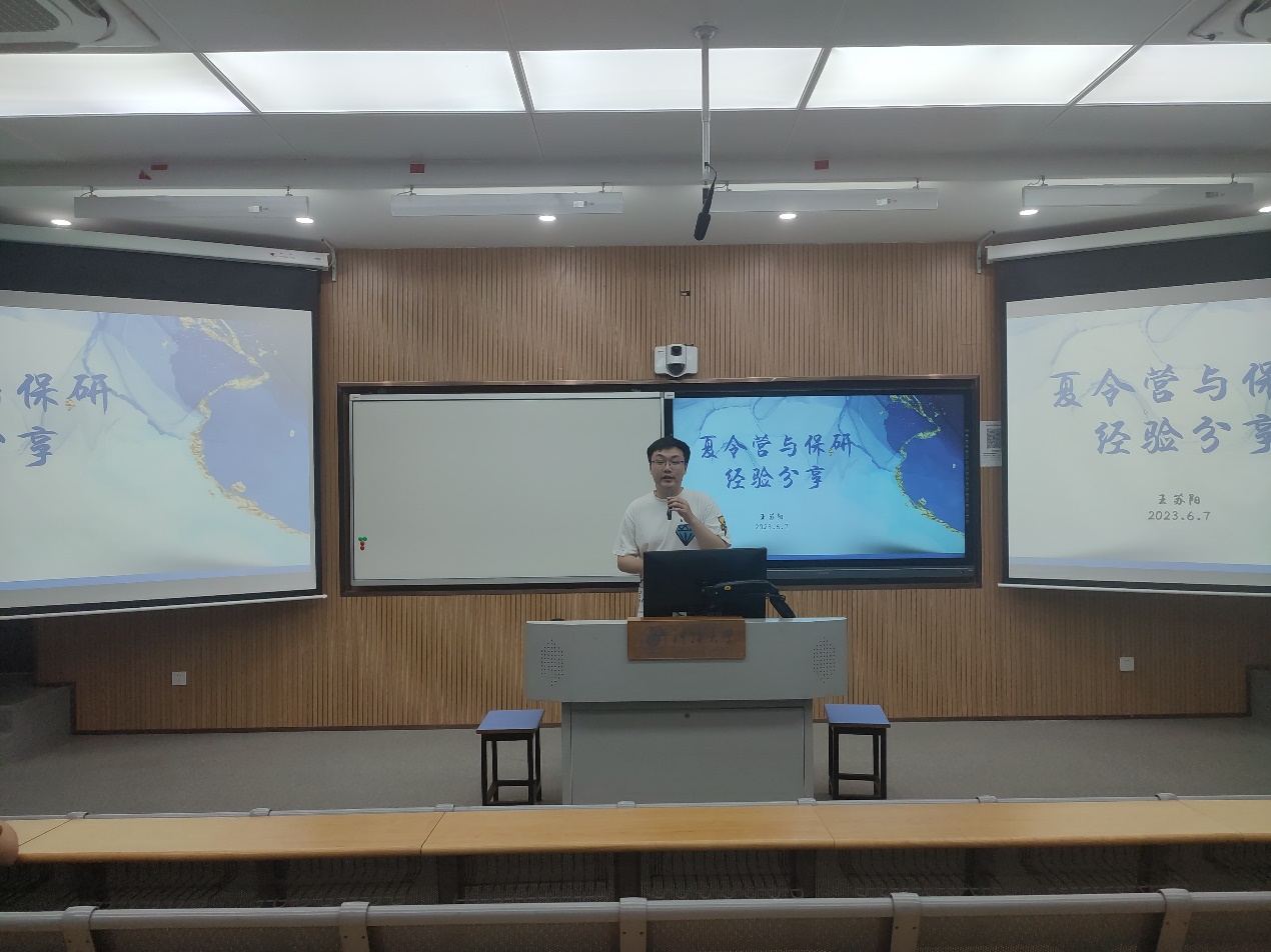 王苏阳首先为同学们介绍了往届的夏令营和保研流程,详细分享了夏令营的准备工作,讲述了自己在准备保研过程中的经验,讲解了如何利用好保研后的大四时间,为适应研究生生活和科研成果孵化做好准备。