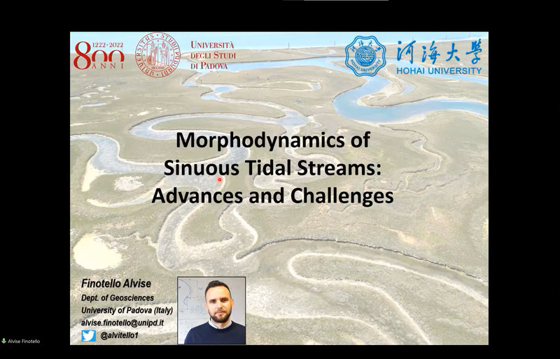 Alvise Finotello博士的报告介绍了蜿蜒潮沟形态动力学的进展与挑战。首先通过卫星图像等方式向大家介绍了什么是蜿蜒潮沟,并阐明了蜿蜒潮沟的重要性,之后Alvise Finotello博士以蜿蜒潮沟动态演变为主题,报告了蜿蜒潮沟的岸壁后退变化速率,并进一步探究了河流和潮汐控制下沟槽演变和形态学上的差异。