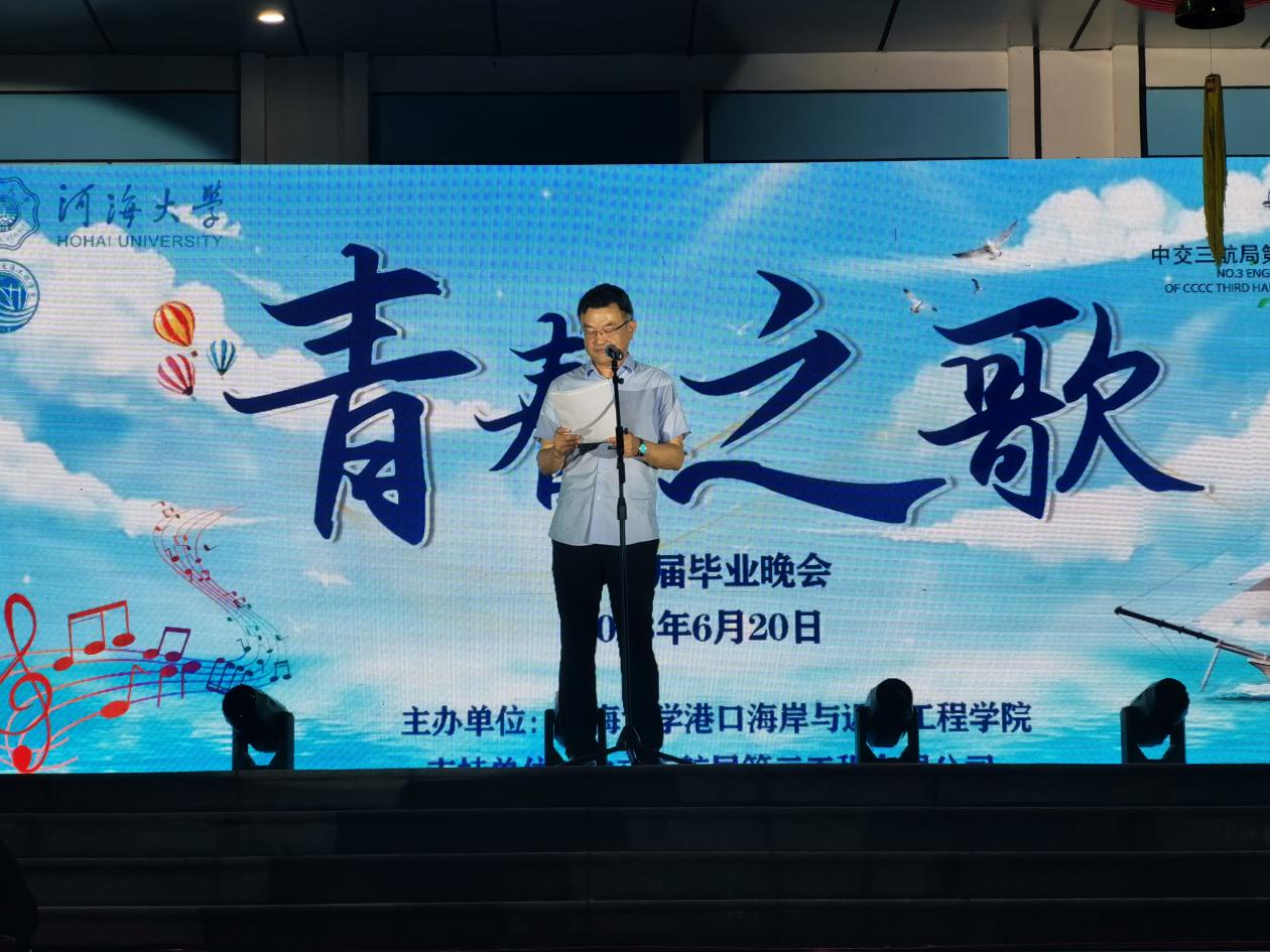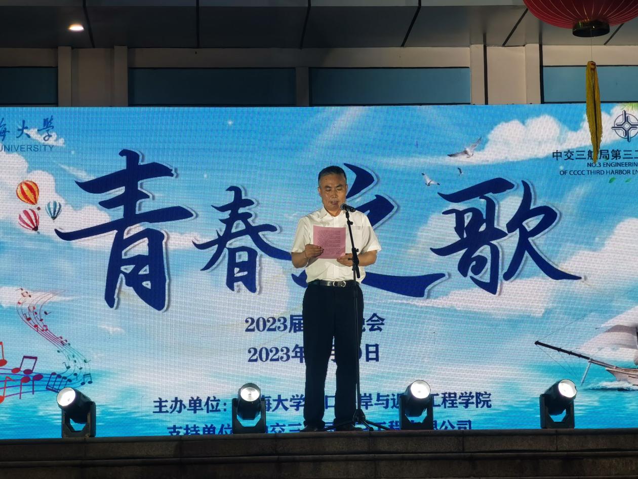 6月20日,我院在严恺馆楼下举办“青春之歌”2023届毕业晚会。学院党委书记张俊基,中交三航局第三工程有限公司副总经理张雷,中交投资智慧新城项目公司总经理范公俊,副院长张继生、张蔚、陈永平,党委副书记沈国军,班导师、辅导员、家长代表及全体毕业生参加活动。