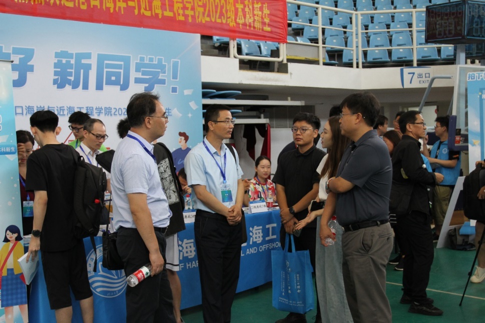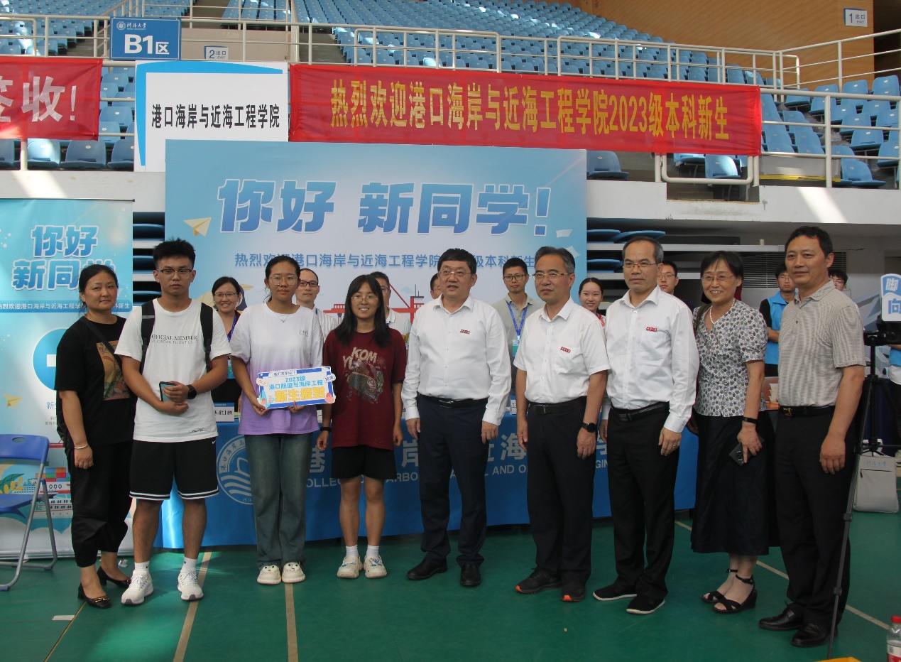 校党委书记唐洪武、校党委副书记郭继超、副校长郑金海,av影片 院长龚政、党委书记张俊基、副院长张蔚、党委副书记沈国军莅临现场指导迎新工作,领导们热情欢迎新生及家长,关心询问了新生报到情况,并合影留念。