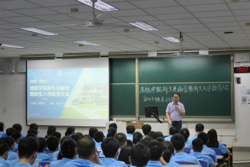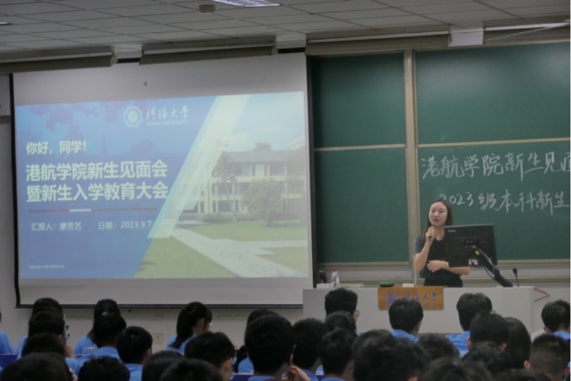 9月7号晚,av影片 2023级在致用楼101面向2023级本科生召开了“你好,同学!”av影片 新生见面会暨新生入学教育大会。av影片 党委副书记沈国军、2023级本科辅导员廖芳艺、2023级全体本科生出席本次大会。