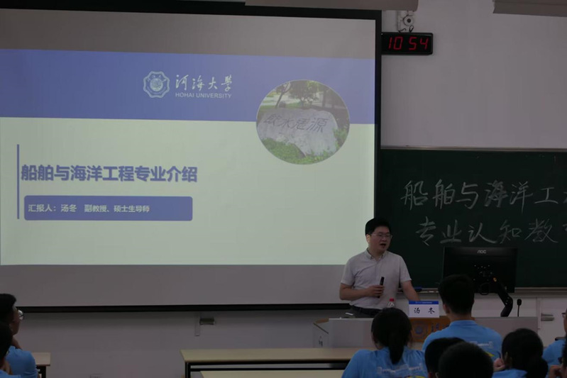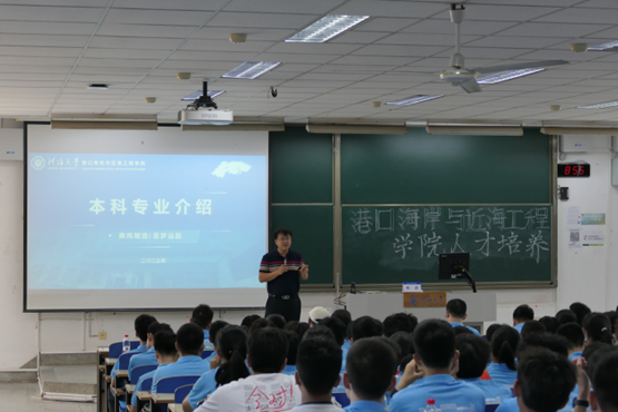 张蔚副院长围绕国家战略意义、专业办学背景、学院人才培养等角度,从洋山深水港、长江口深水航道工程等一系列大国工程的视角,生动介绍了三个专业的内涵。随后,张院长与新生进行了热烈的交流环节,鼓励新生不断提升专业素养、国际视野,培养自身综合能力。