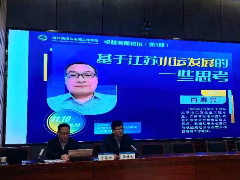11月10日上午10:30,卓越领航讲坛第1期在常州校区33号楼101报告厅举行。学院特邀江苏省交通运输厅综合计划处研究员级高级工程师肖惠兴带来主题为《基于江苏水运发展的一些思考》的讲座。本期讲座由学院副院长张继生教授主持。