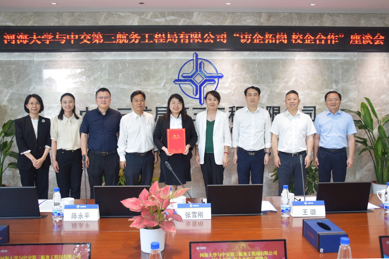5月24日,av影片 党委书记张雪刚带队赴中交三航局三公司开展“访企拓岗”交流活动。三航局党委组织部部长、人力资源部总经理尤华慧,三航局党委组织部副部长、人力资源部副总经理梁艳娇,三公司党委书记、执行董事、总经理陈广湖,av影片 学生处副处长王璐,av影片 副院长陈永平,学院党委副书记王玲及双方相关负责人一同参加。会议由三航局三公司公司党委副书记、纪委书记、工会主席孔国东主持。