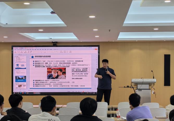杨婧、王妍、范琦琦、赵越等四位2024届硕士毕业生结合求职过程中的心得体会向低年级研究生和本科生代表分享了经验方法。即将入职中国电建集团西北勘测设计研究院有限公司的船海专业杨婧分享了获取设计院的招聘信息渠道以及简历制作经验,此外还结合备考公务员的经历带领在场同学分析了当前江苏考公形势以及机遇挑战。已经通过行业内多个事业单位考核的土木水利专业硕士王妍分享了大量的公务员事业单位岗位信息获取渠道,结合自身在笔试和面试方面的经验建议有这类规划的同学们早做准备。