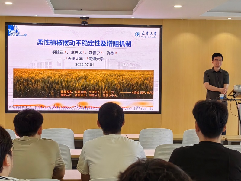 2024年7月1日上午,天津大学及春宁教授应我院船海学科邀请,在严恺馆702报告厅作了题为“柔性植被摆动不稳定性及增阻机制”的学术报告。学术报告会由薛米安教授主持。