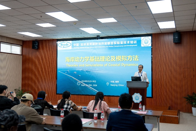 9月23日,中国-加纳港湾保护与开发联合实验室技术培训(第一期)在av影片 牛首山科技园举行了开班仪式,本次培训主题为海岸动力学基础理论及模拟方法。中国-加纳港湾保护与开发联合实验室负责人、我院郑金海教授致开幕辞并介绍了联合实验室的建设进展。陈伟秋研究员讲授了技术培训第一课:海堤越浪预测方法。