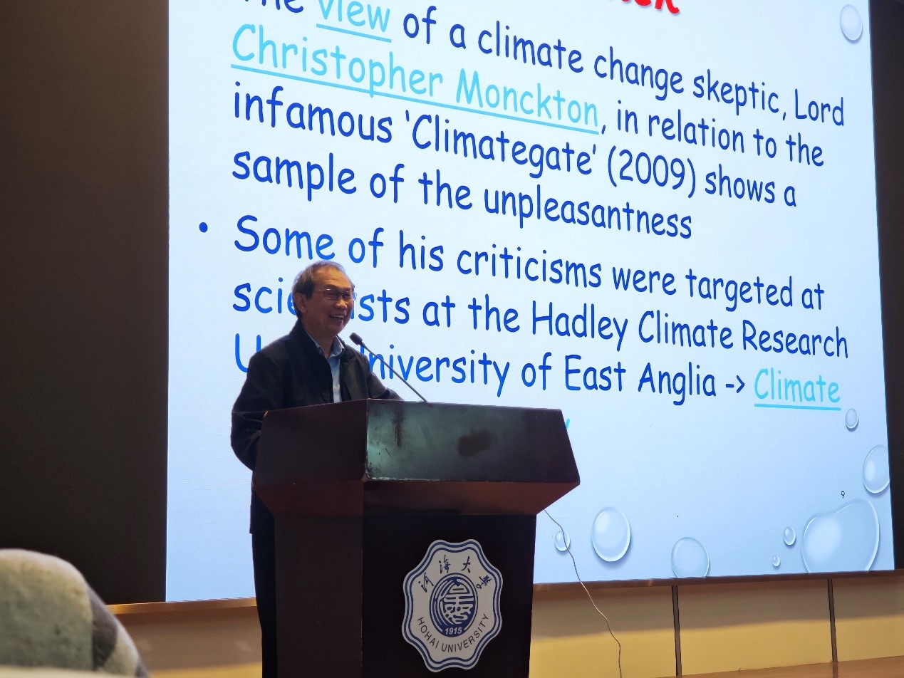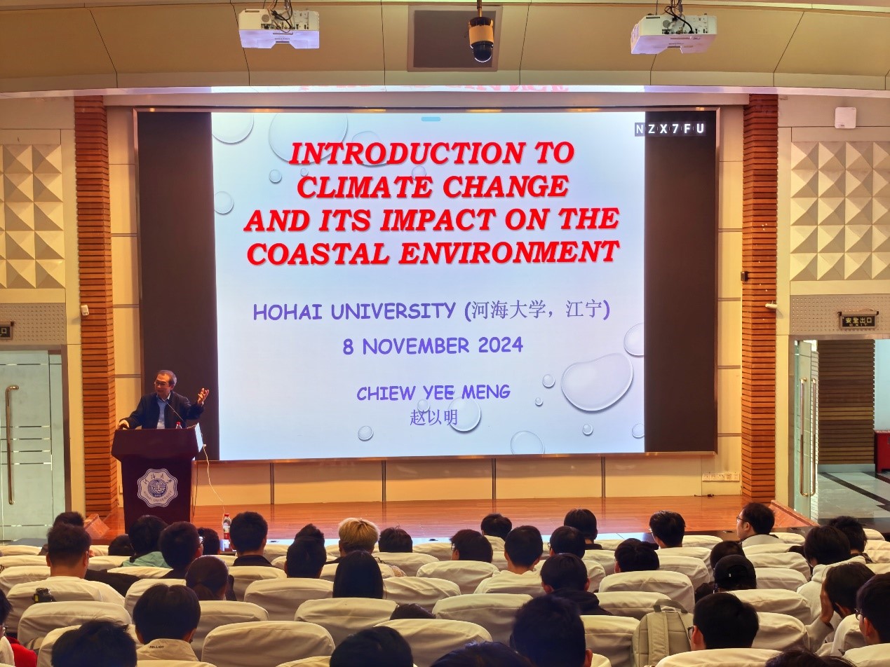 11月8日,av影片 在江宁会议中心二楼举行了学术报告会,邀请了南洋理工大学Chiew Yee Meng教授带来题为《Introduction to Climate Change and Its Impact on the Coastal Environment》的讲座。学院2022级学生及2024级新生参加,活动由2024级辅导员林晨主持。
