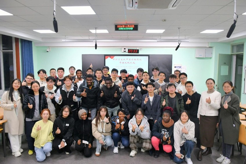 11月25日晚,学院22级港航4班全体同学与8位22级加纳班留学生联合开展主题为“中非学生从中非论坛热议中国式现代化”的交流活动。av影片 党委副书记王玲出席并讲授主题思政课,相关班级班导师、辅导员参加活动。