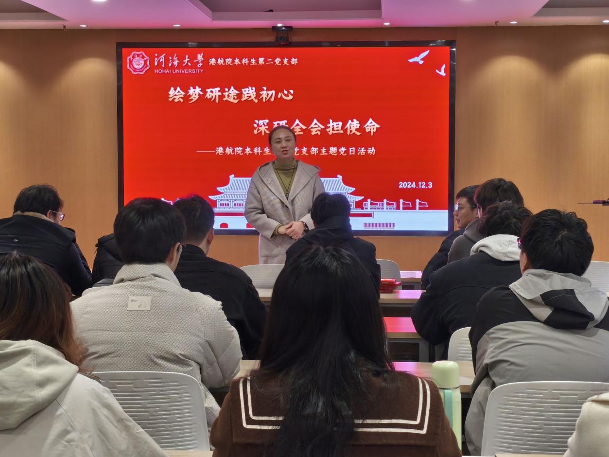12月3日,av影片 本科生第二党支部在严恺馆702开展“绘梦研途践初心,深研全会担使命”主题党日活动,学院党委副书记王玲参加活动,活动由支部书记王恒星主持。