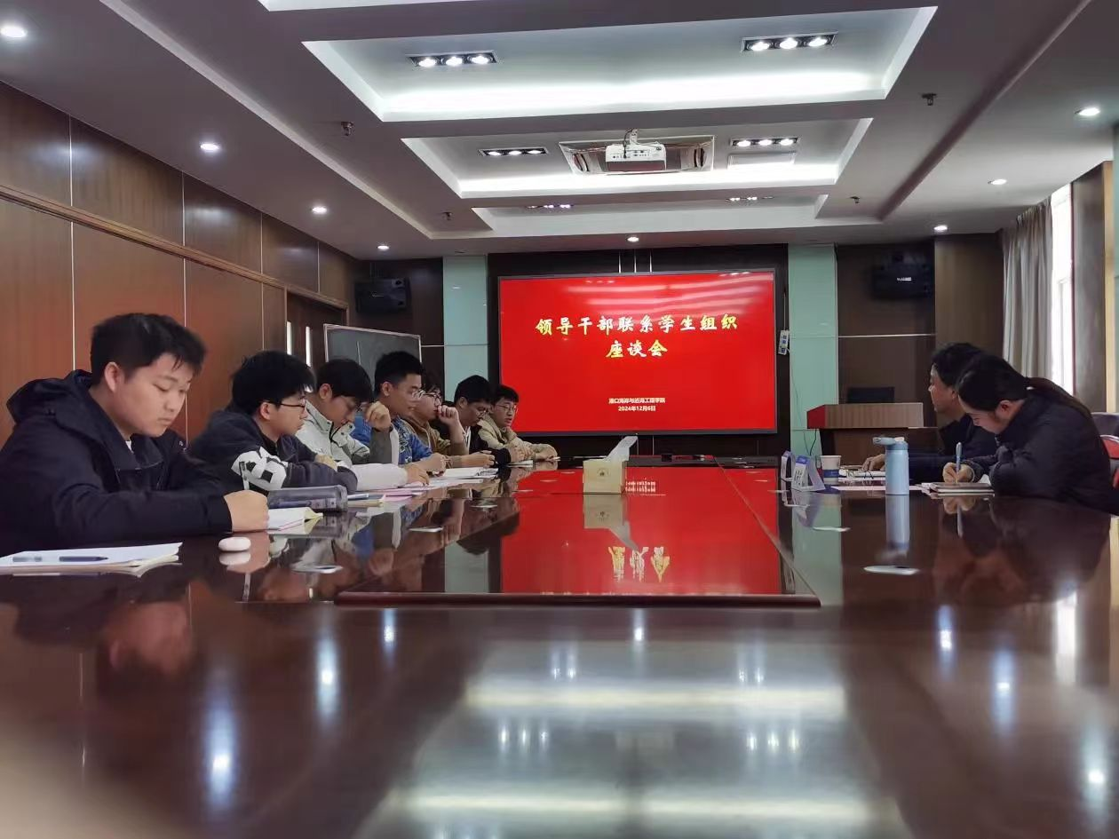 12月6日下午,我院组织领导干部联系学生组织座谈会,学院党委书记张雪刚、团委书记廖芳艺老师、av影片 学生会主席团及部门负责人出席本次会议。