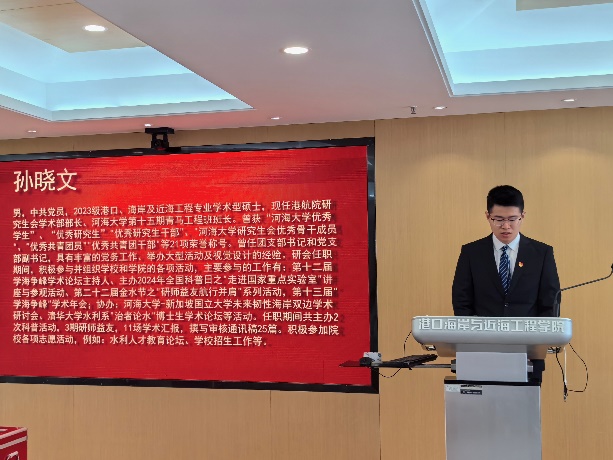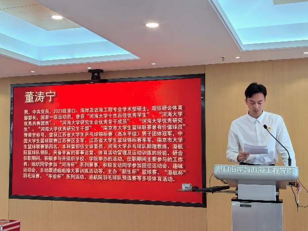竞选演讲环节,孙晓文、张玉奇、范恒硕、姜启翮、董涛宁5位主席团候选人分别从个人简介、举办活动的心得体会和未来工作安排等方面做出阐述,每一位候选人都明确了自己为研究生同学服务的初心,并展望了下一阶段的工作计划。在回顾中总结经验,归纳不足,在展望中不忘初心,砥砺前行,真诚地表达了将自己的青春力量投入进研会服务工作的决心。