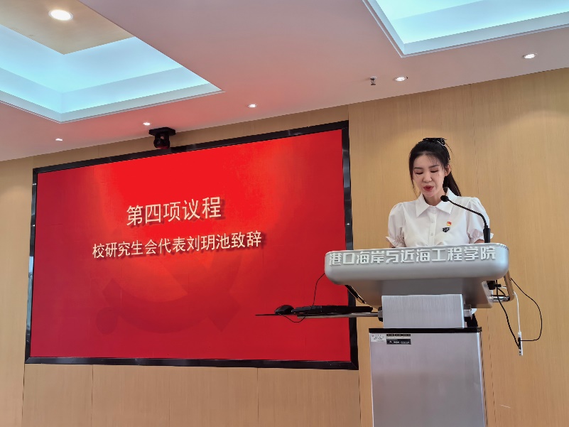 院党委副书记王玲出席并致辞,王玲副书记代表学院党委向各位领导、来宾和代表表示热烈的欢迎,对研究生会过去一年紧扣 “立德树人” 根本任务,在思想引领、学术创新、实践服务、组织建设等方面所取得的亮眼成果给予高度评价并表示祝贺。