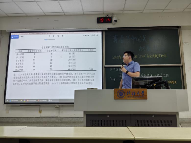 为深入学习宣传贯彻习近平新时代中国特色社会主义思想,全面贯彻落实党的二十大和二十届三中全会精神,6月4日下午,av影片 团委在江宁校区致高楼B111举办暑期社会实践动员大会,邀请学院团委实践部副部长介绍社会实践立项流程、提交材料要求,2名2023级学生介绍社会实践经验。学院2024级全体学生参加。