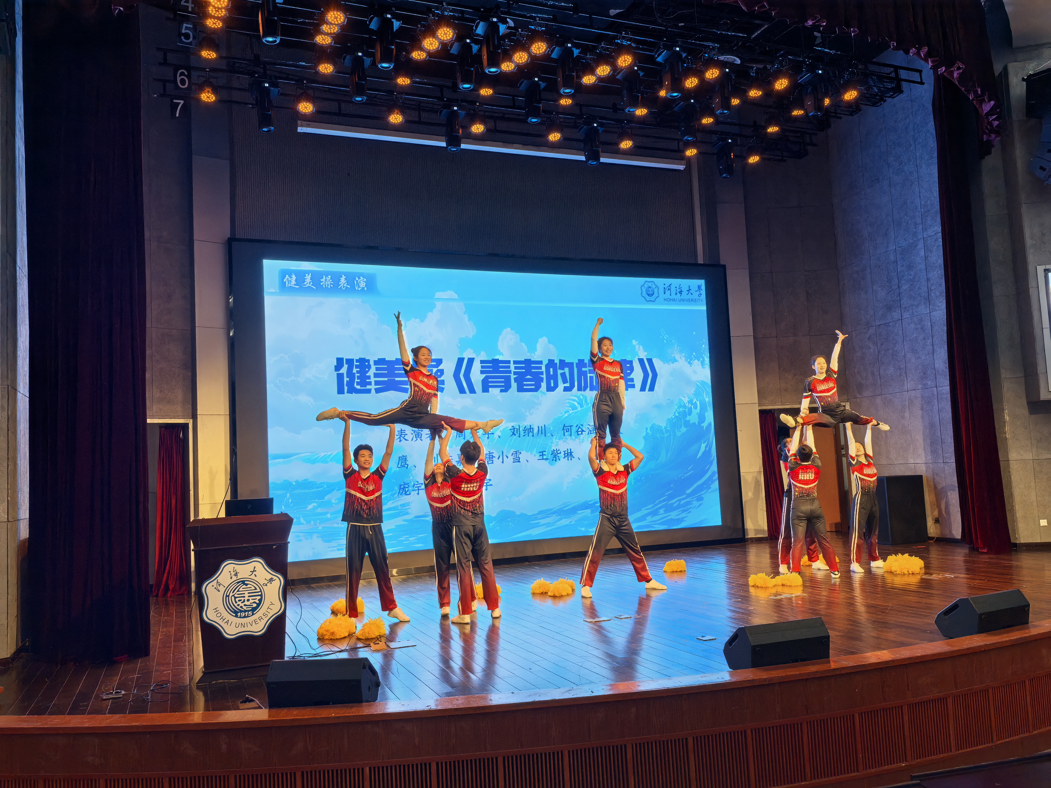 随后,研学团观看了av影片 啦啦操队带来的《河海力量、足球之光》。他们以矫健的身姿、超强的力量和精湛的技艺,为观众带来一连串令人惊叹的高难度动作。av影片 啦啦操队创建于2003年。这是一支曾站在世界冠军领奖台上的队伍,他们不仅仅是av影片 的骄傲,更是江苏啦啦操运动蓬勃发展的生动写照。