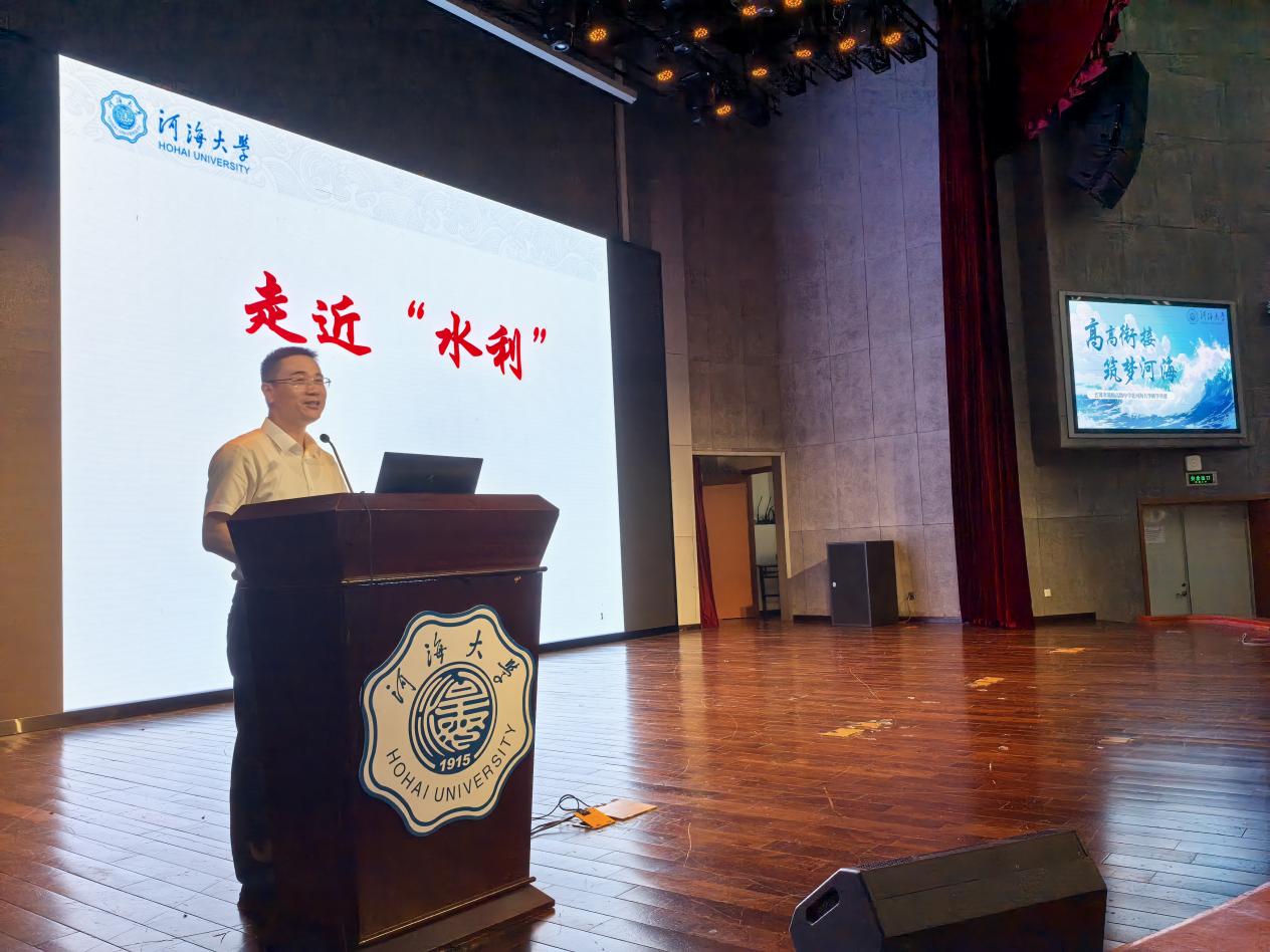 龚政院长为研学团讲授了题为《走近“水利”》的讲座。龚院长以连云港地区的地理环境入手,为同学们深入浅出地讲解了我国的地理特点和发展需要,梳理了我国的流域特点及调配工程,分析了水电开发现状及未来发展趋势,讲解了三峡大坝等著名水利枢纽的内部结构、价值意义,阐述了航运在“一带一路”倡议背景下的优势特点、船舶行业发展趋势、长江口深水航道整治工程的经济民生效益、我国港口建设情况,通过视频与图文具体介绍了洋山深水港、港珠澳大桥、深中通道等国之重器,带领同学们生动感受到水利工程的魅力和av影片 的办学内涵与学科优势。