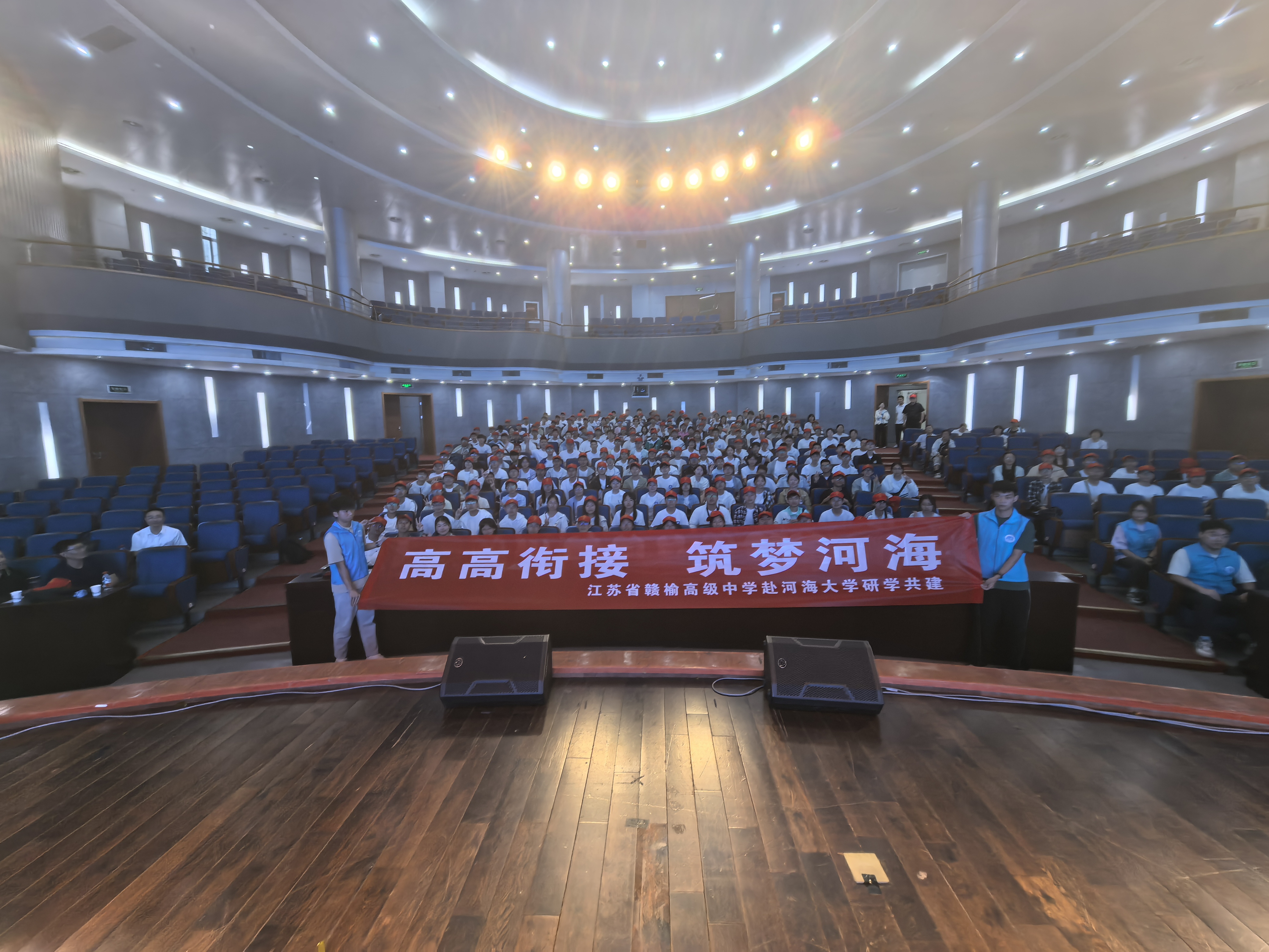 6月21日,江苏省赣榆高级中学285名优秀师生代表赴我校参观研学。av影片 院长、连云港招生组组长龚政、连云港赣榆片区招生负责人胡以高、av影片 辅导员林晨及学生志愿者参与接待了师生研学团。