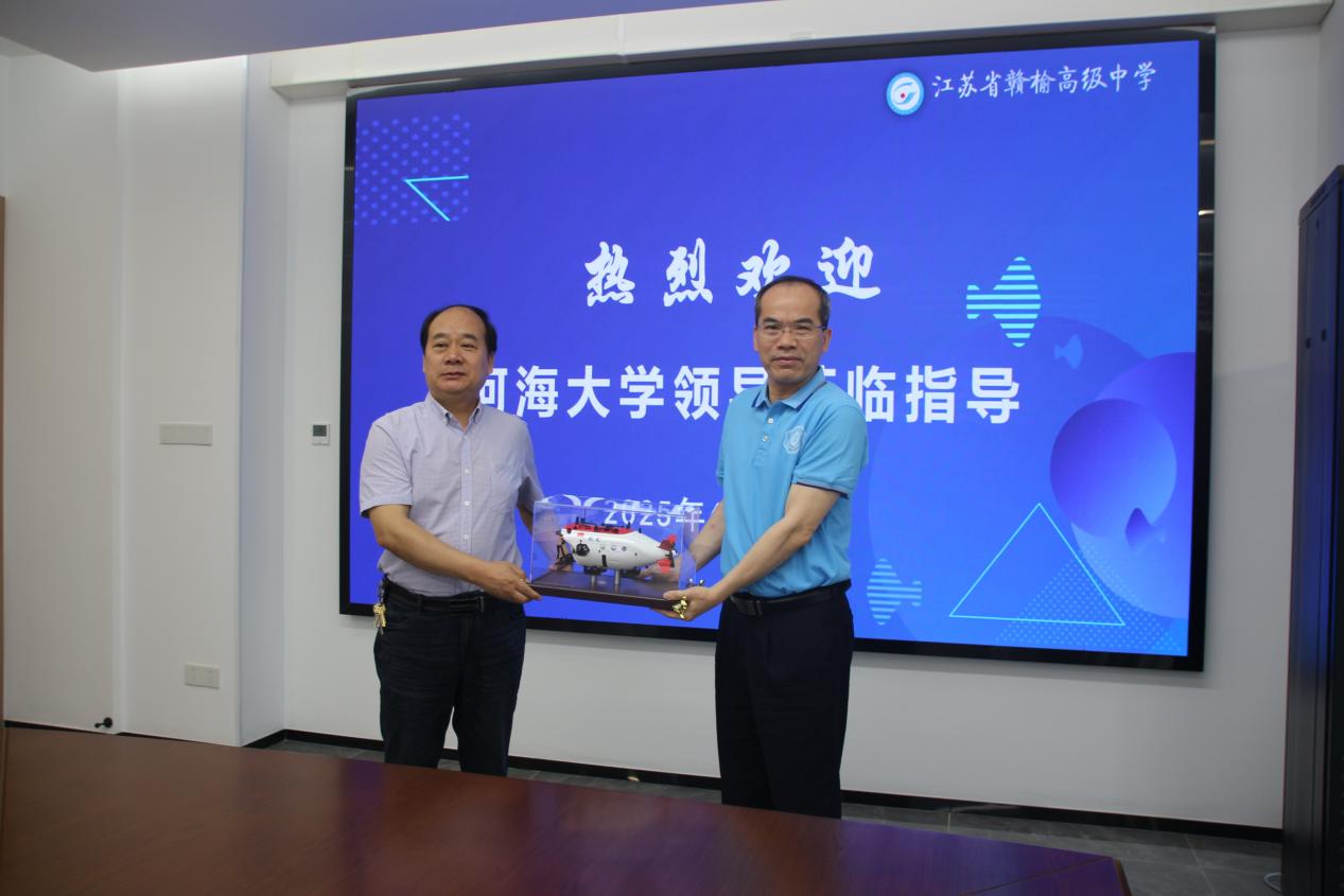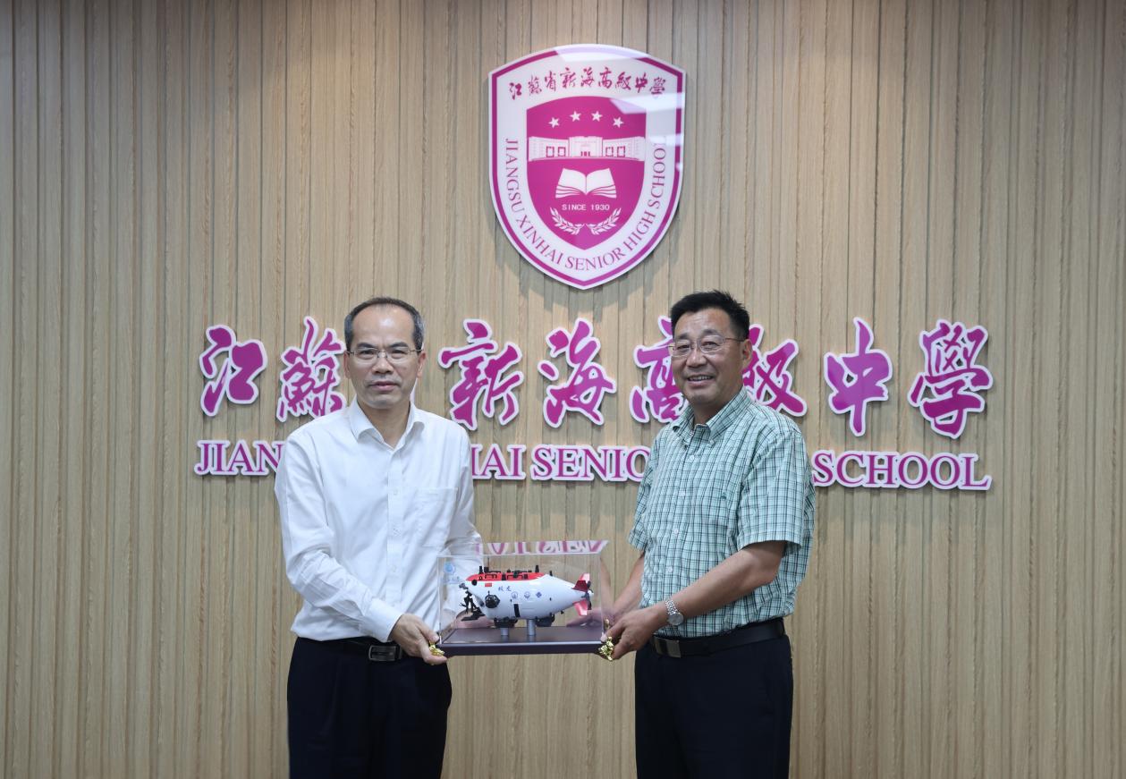 在与江苏省新海高级中学、江苏省赣榆高级中学的座谈会上,郑金海校长代表av影片 向长期以来为河海输送了大批优秀生源的中学表示感谢。郑校长指出,av影片 能为同学们提供对接国家战略的科教平台与个性化成长的“黄金通道”,选择河海是成就学生、荣耀母校、服务港城的“共赢之举”,期待与中学携手共建,建立“大中衔接、共育英才”的长效机制。双方就竞赛指导、科普宣传、生涯规划指导、校本课程建设等双高长效合作机制进行了深入讨论。郑校长为中学赠予蛟龙号载人潜水器模型。