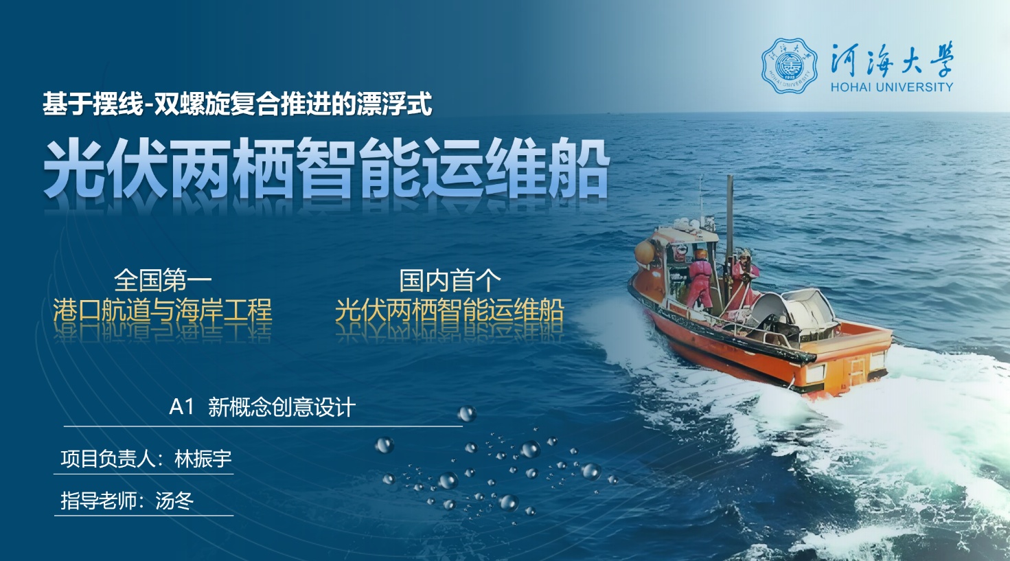 8月9日至10日,第十四届全国海洋航行器设计与制作大赛暨第二届船舶与海洋工程类教师教学创新大赛在武汉理工大学举办。由av影片 汤冬副教授指导,林振宇、张航瑞、费盛泽、吴宇含、侯长峰同学组成参赛团队完成的“基于摆线-双螺旋复合推进的漂浮式光伏两栖智能运维船”项目,聚焦专业发展方向、紧跟学术研究前沿,将船舶创新性和智能化设计与漂浮式光伏运维需求有机结合,最终斩获佳绩,获第十四届全国海洋航行器设计与制作大赛特等奖。