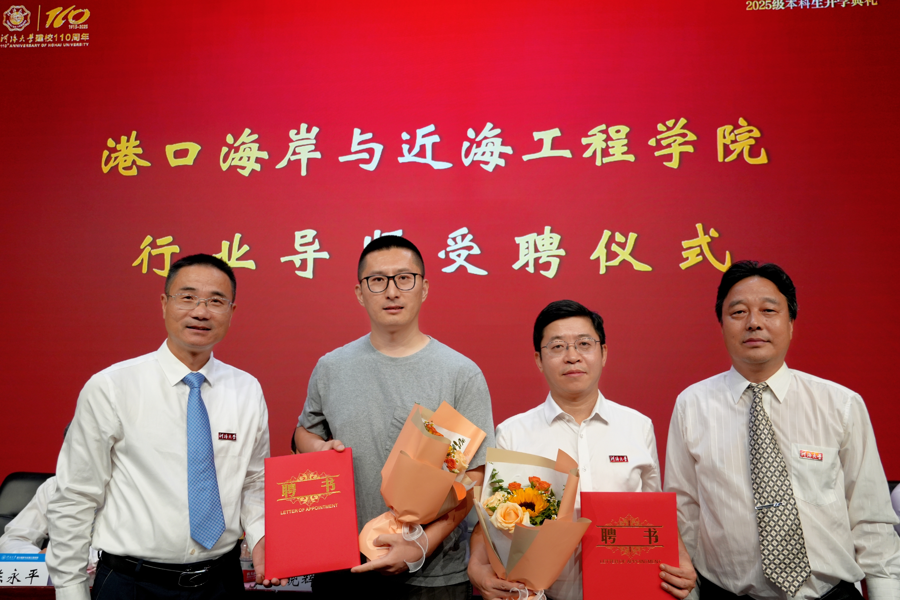 典礼现场还举行了行业导师、班导师聘任仪式。学院龚政院长、张雪刚书记为中交水运规划设计院总经理助理蔡翠苏、自然资源部海洋减灾中心研究员张尧颁发av影片 行业导师聘书;张蔚、陈永平、管大为副院长为李元、郝嘉凌、江朝华、欧阳峰、俞小彤、耿亮、孔祥地等7位班导师颁发聘书。