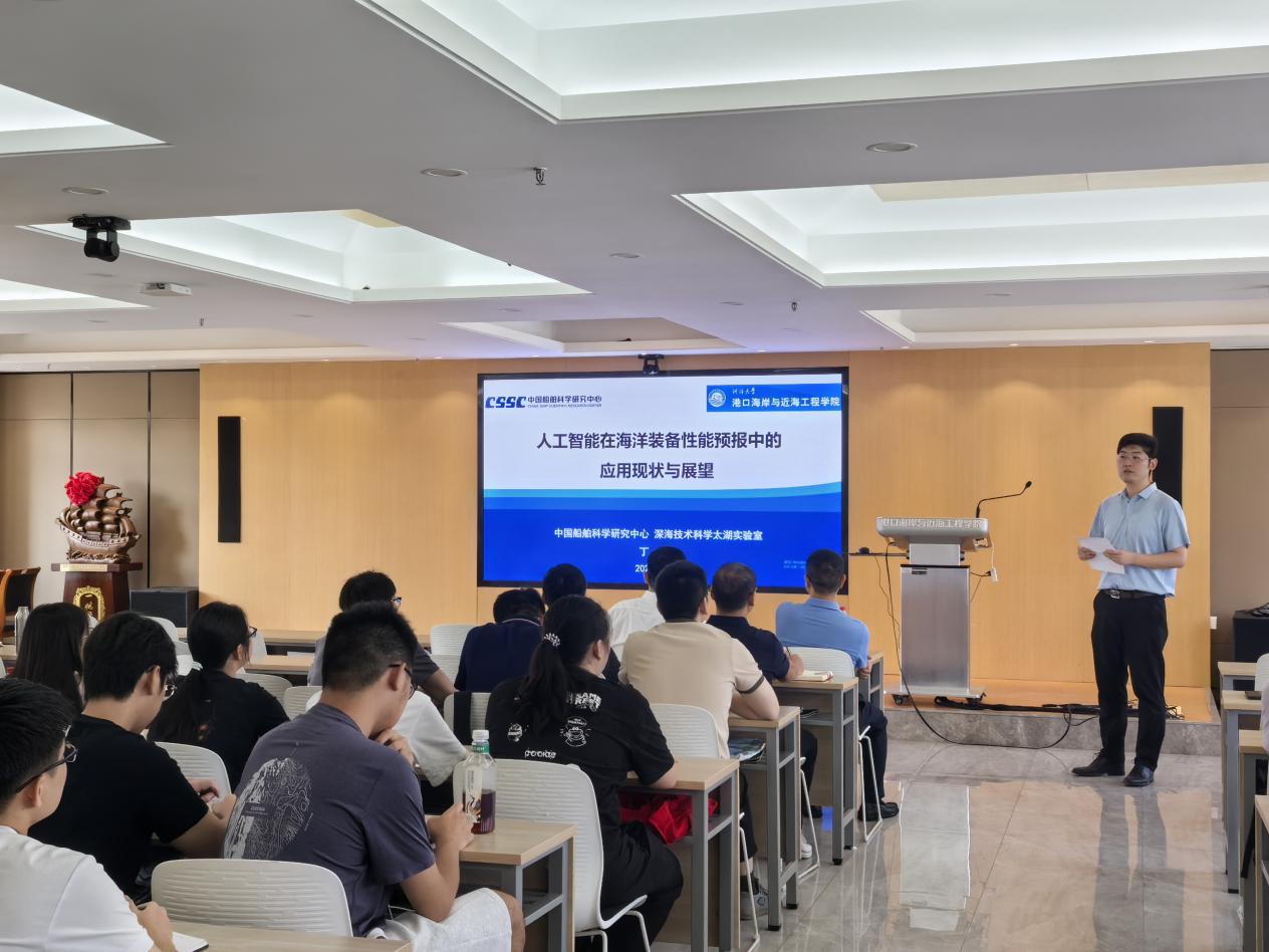 2025年9月6日,中国船舶科学研究中心深海技术科学太湖实验室丁军主任应av影片 邀请,在严恺馆702会议室作了题为“人工智能在海洋装备性能预报中的应用现状与展望”的学术报告。学术报告会由龚政教授邀请,管大为教授主持。