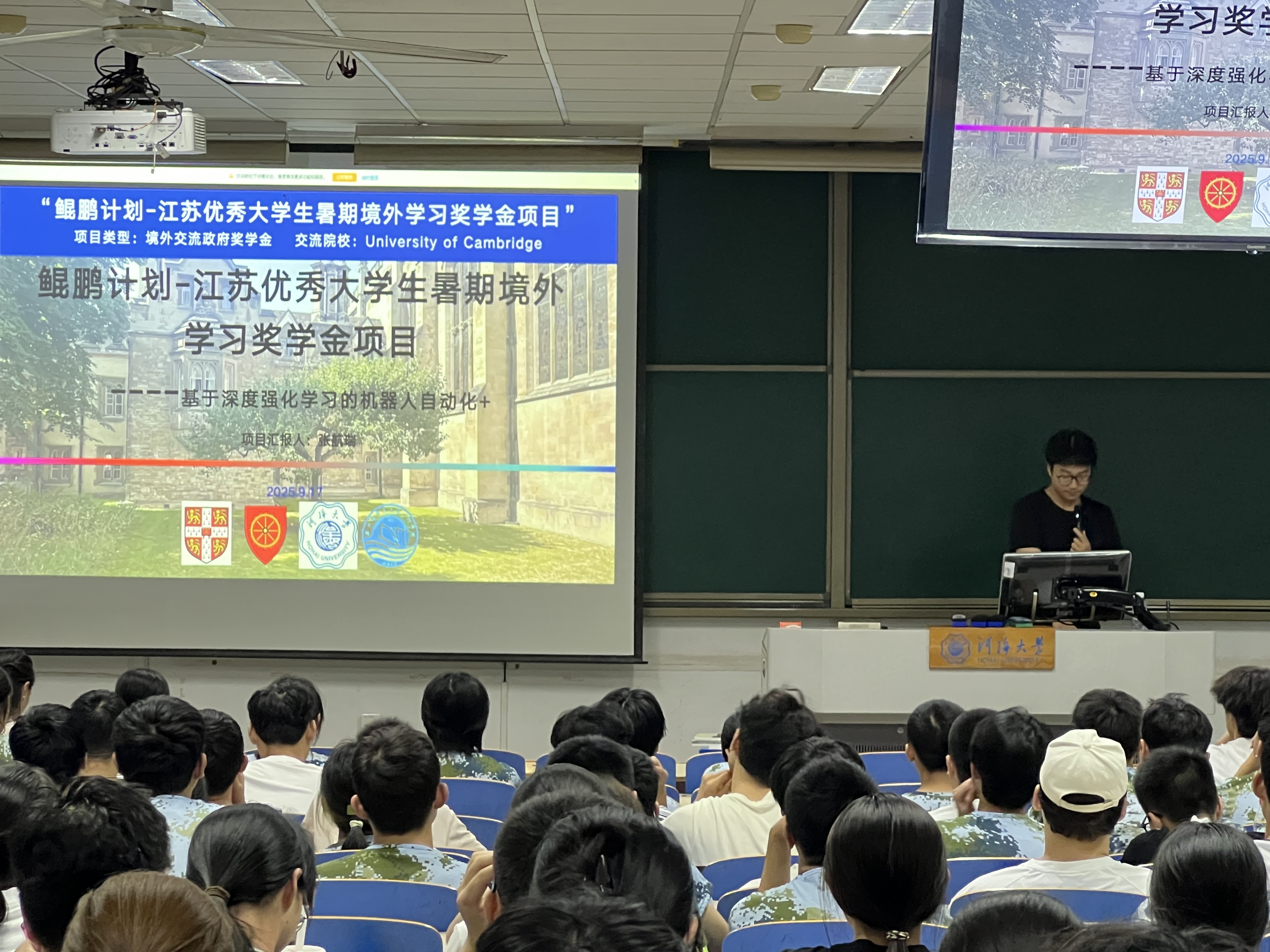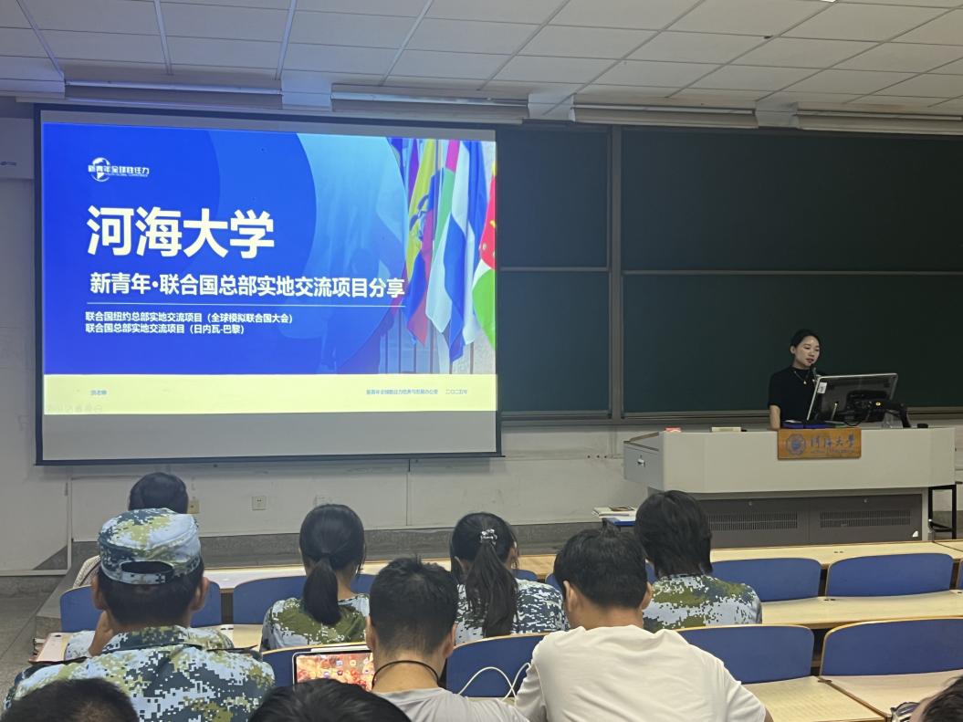 在经历分享环节,2023级本科生张航瑞、季孟涵、唐闻宇三位同学结合自身经历,分享了今年暑假参与“鲲鹏计划-江苏优秀大学生暑期境外学习奖学金项目”“新青年・联合国驻日内瓦总部实地交流项目”的研学历程与见闻感悟,为新生提供可借鉴的实操参考。