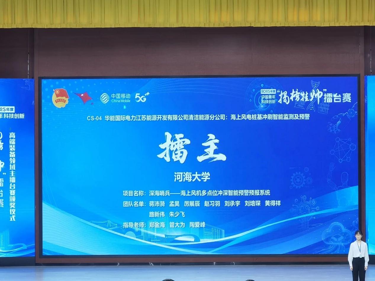 由郑金海教授、管大为教授、陶爱峰教授指导,蒋沛漪、孟昊、厉展辰、赵习羽、刘承宇、刘培琛、黄得祥、路新伟、朱少飞等同学共同参与的项目《深海哨兵——海上风机多点位冲深智能预警预报系统》,聚焦海上风电桩基冲刷风险,针对传统监测精度较低、实时性差、适应性弱等难题,研发出高精度、智能化、全天候的冲刷监测与风险预警系统。团队自主研制智慧粒子监测装置、实现多源数据智能感测反演、构建预警预报系统,获得一系列专利、论文、软件著作等创新成果,为海上风电安全运维提供智能高效的新方案。