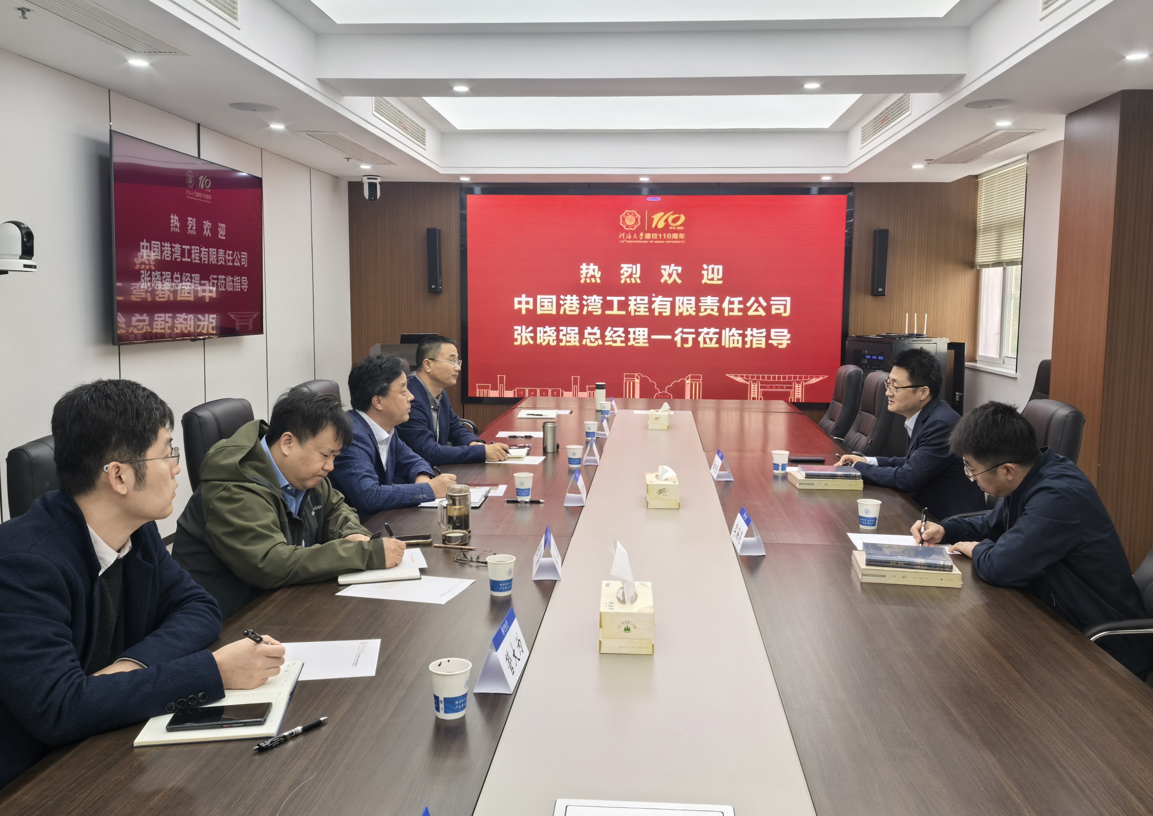 av影片 建校110周年华诞之际,为进一步深化校企合作,共谋发展新篇,10月26日,中国港湾工程有限责任公司总经理张晓强、办公室主任李海泉一行来院座谈交流。学院领导班子全体成员出席座谈会,座谈会由学院党委书记张雪刚主持。