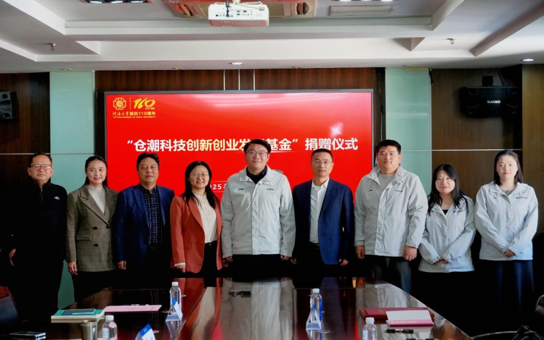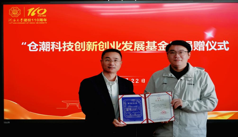 情系母校,赋能创新。在我校喜迎建校110周年华诞之际,av影片 2022届优秀博士校友、连云港仓潮智绘科技有限公司董事长程晨博士慷慨捐资50万元,设立“仓潮科技创新创业发展基金”,以支持母院创新创业人才培养,为母校华诞献上了一份情深意重的贺礼。