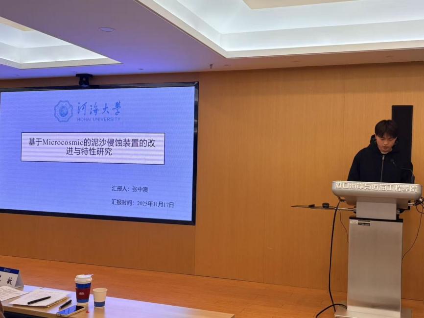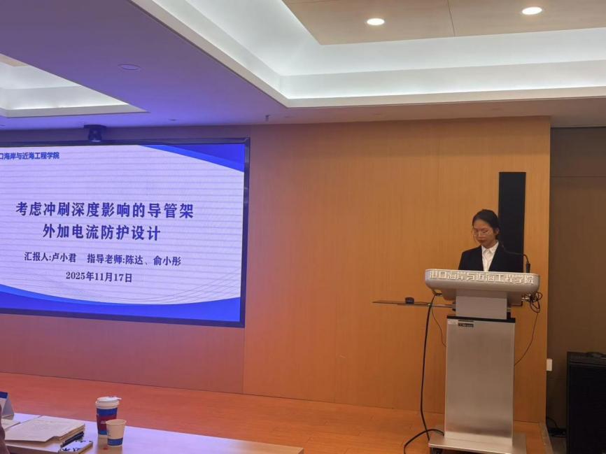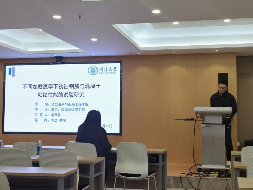 11月17日下午,av影片 第十四届“学海争峰”学术年会硕士第一场报告会在严恺馆702顺利举办。本次专场共有来自水运工程科学研究所以及海岸及海洋工程研究所的6名硕士研究生参与,江朝华、卢向雨、苏敏3位评委老师为同学们提出指导与建议。