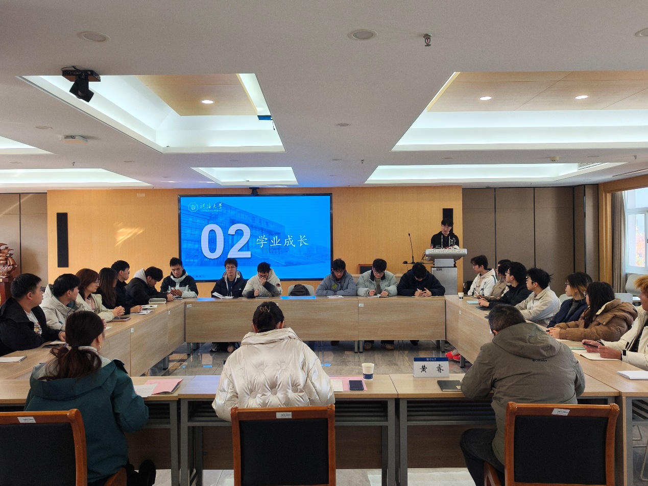 班导师黄睿结合自身的专业经验,强调扎实的专业基础是应对研究生阶段复杂课题、开展自主研究的前提,希望同学们高度重视这一时期的学习。同时,黄老师也从学习方法与态度上给出建议:一方面要端正学习态度,主动发挥主观能动性,遇到知识难点及时钻研、积极请教;另一方面要注重学术素养的积累,“多阅读中文核心文献,既能加深对专业领域的理解,也能学习规范的学术表达、掌握研究思路,为后续撰写论文、参与科研项目打下基础”。