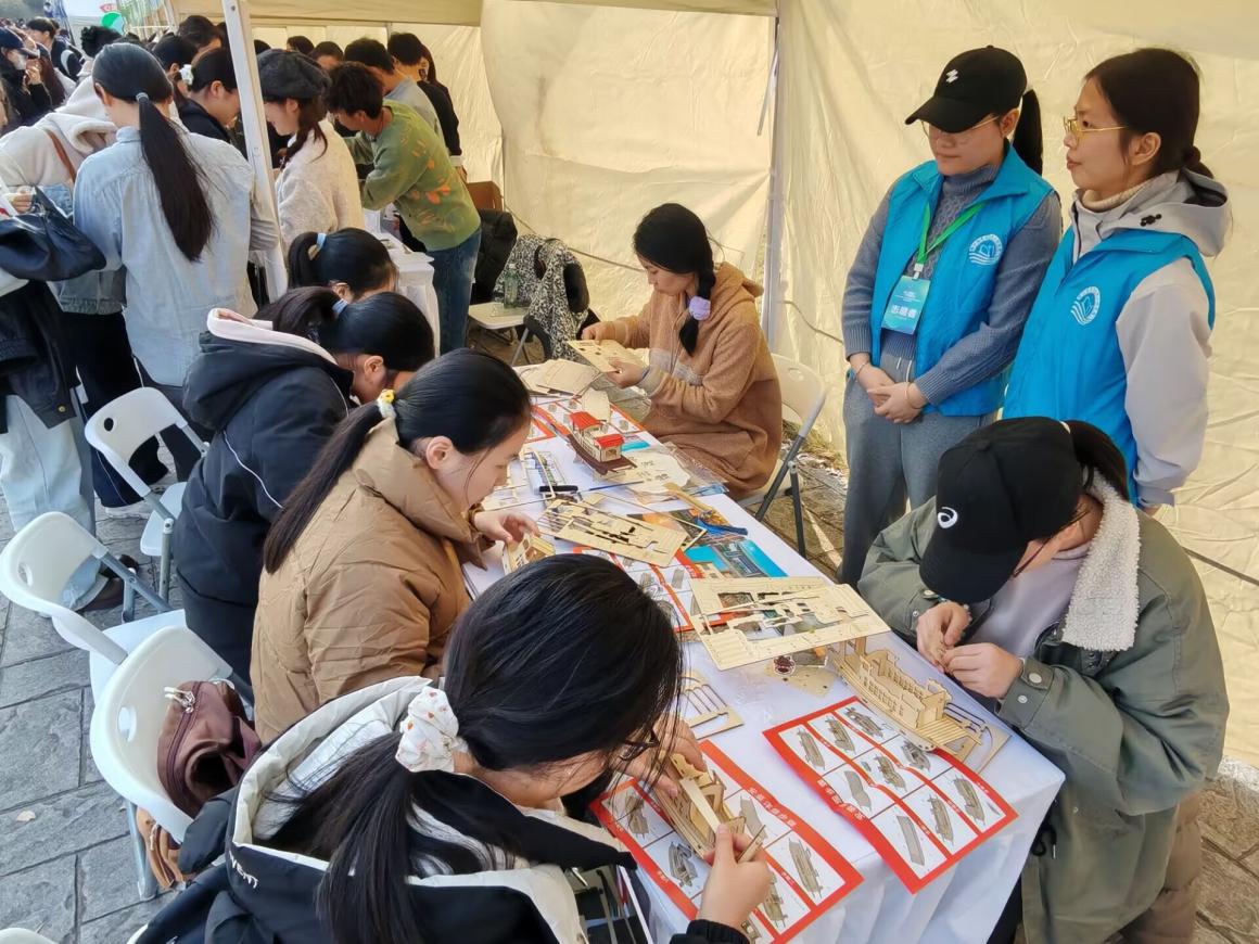 “心流造物院区”同步开展“描绘蓝图・未来愿景”心理绘画疗愈活动,设置团扇彩绘、环保帆布袋创作区,志愿者备好多种颜料工具,引导师生以笔墨勾勒美好愿景,让参与者在专注创作中释放压力,搭建起通往未来的“心灵彩虹桥”。