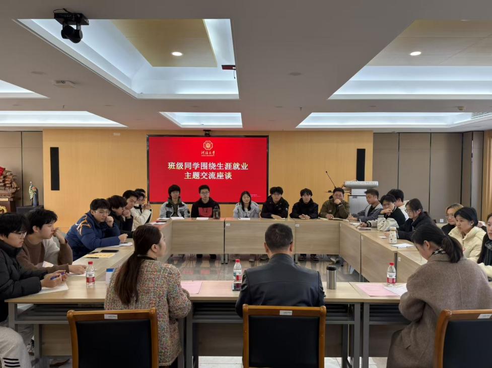 12月9日,“领导干部联系班级”座谈会在严恺馆702举办,av影片 院长龚政、2023级海资一班班导师张茜、辅导员廖芳艺以及2023级海资1班全体成员参与本次活动。